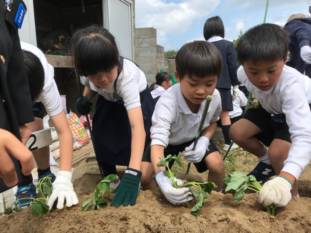 2年生は3.4限目の生活の授業で野菜の苗を植えました。