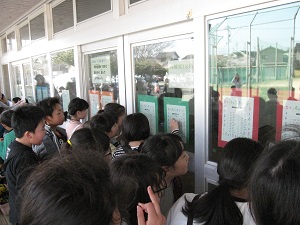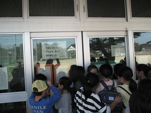 休みでしたが,多くの児童が学校へやってきて新しい仲間を確認していました。