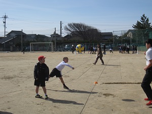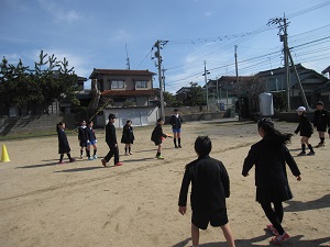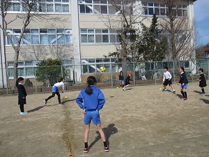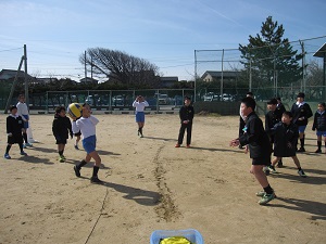少し肌寒い気温でしたが,青空の下,5年生が考えた遊びを楽しんでいました。