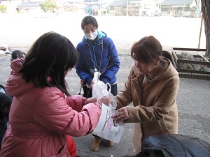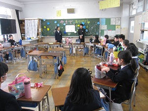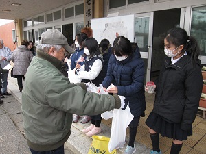 4年生が、木津桃の苗木の受け渡しを行いました。