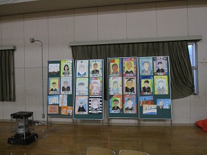 似顔絵をがんばってかきました。当日は近くから鑑賞して自分の絵を探して欲しいです。