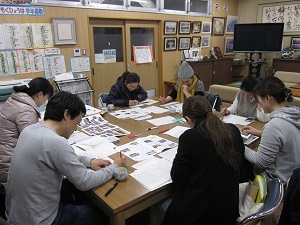 夜、PTAの広報部が「しおなり」の編集のために学校に集まってくれました。