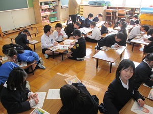 昨日お昼休みに、図書室・多目的ホールにて「家族に感謝のしおり作りの会」を行いました。