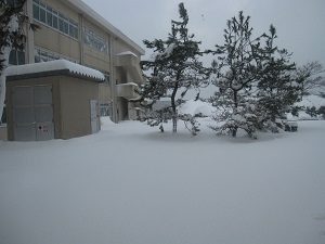 運動場の様子です。これだと雪が多すぎて逆に遊べませんね。聖徳太子の像も雪で埋もれてしまっています。