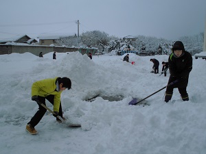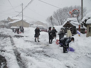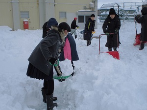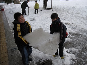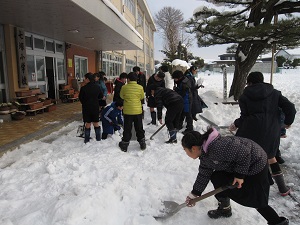 昨日と今日、4~6年生が自主的に雪かきをがんばっています。