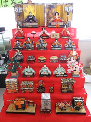色鮮やかなひな壇は、廊下を通る人の目を楽しませてくれています。