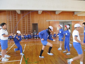 1年生は前とび、6年生ははやぶさとびに挑戦しました。