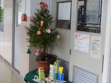 ひかり教室の前には、クリスマスツリーが立っています。