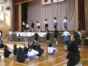 音楽好きが集まり,昼休みに歌を歌ったり,楽器を演奏したり,踊ったり,なわとびでリズムをとったりしました。