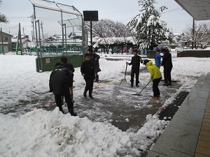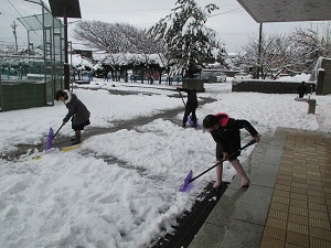 そこで,6年生が朝、雪かきをしてくれました。