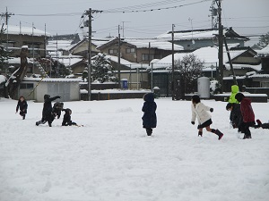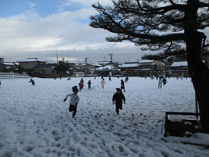 こんなに雪が積もった日は,人気の雪合戦,雪だるま作り,雪の中へ寝転んで遊ぶなど,子ども達はこの時期にしかできない遊びを楽しんでいました。