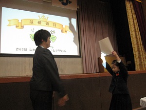 学校集会が11月1日(水)に行われました。たくさんの人が日頃の頑張りや、夏休みの頑張りを認められました。