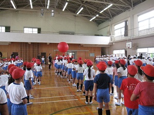 大玉おくりの練習が始まりました。児童もこの競技が好きなのか,かけ声が飛び交うなど,集中した姿が見られました。
