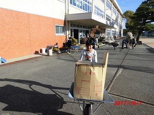 一輪車で本や段ボールを運んでくれました。