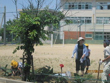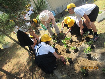 2017年6月22日 12時56分6月20日(火)、4年生が学校の花壇に花の苗植えをしました。