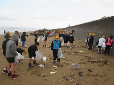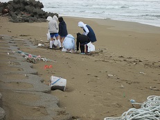 6年生の感謝の気持ち 2つ目は、学校と地域に『ありがとう』。6年間の感謝を込めて 海岸清掃をしました。時折、冷たい雨の降る中、たくさんゴミを集めていました。