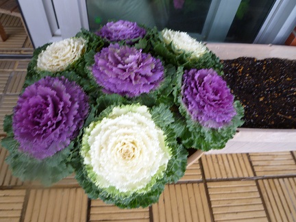葉ボタンが、寒さに負けずに咲いています。