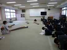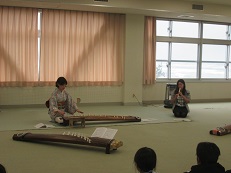 始めに、川守さんと音楽の福本先生の合奏で『春の海』を鑑賞しました。