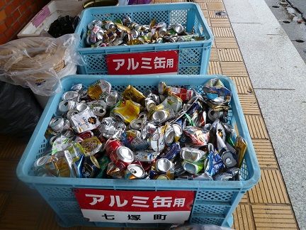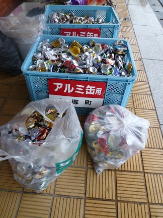 たくさんのアルミ缶があつまりました。