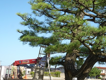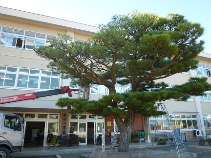 学校前の松の木が剪定されました。