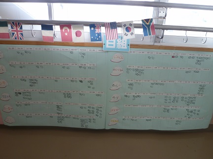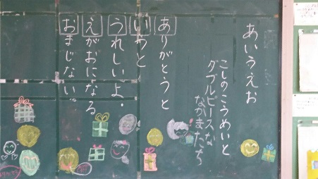 2年2組教室の後ろの黒板です。
