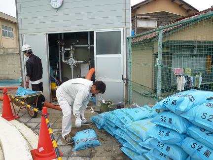 まず、プールの濾過器の中を取替工事。