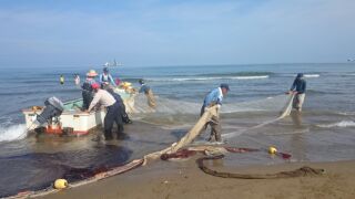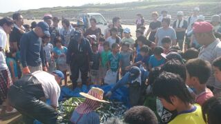 PTA主催の地引き網がありました。