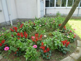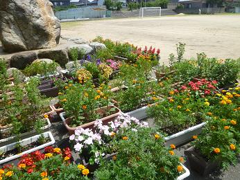 学校のまわりの花壇やプランタの花植えをすることができました。