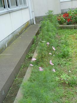 中庭には、サルビア・マリーゴールドなど・・・もうコスモスも咲いています。