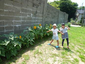 南運動場には、ひまわりが元気です