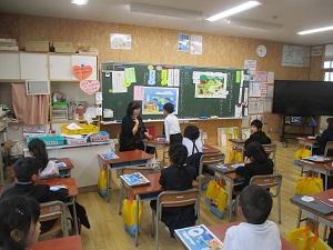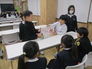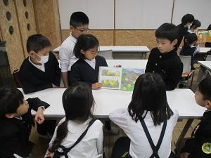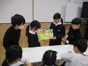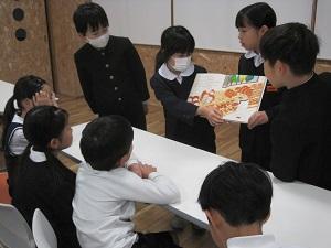 朝学習の時間に、3年生は国語科「お薦めの本を紹介しよう」の学習活動として、グループで話し合って決めた本を1年生に紹介していました。どのグループも一生懸命で、1年生の目もキラキラ輝いていました
