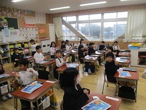昨日いただいた「復興トンボ」は、先生から頂いた経緯や遊び方を紹介していただいて、各クラスで子供たちと触れ合っています。まずは1年生が、仲良く遊びました。これから寒くなり、室内で遊ぶことも増えてきますが、三治さんの思いが子供たちにしっかりと伝わり、大切に遊んでいる様子が見られました。ありがとうございました