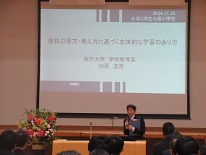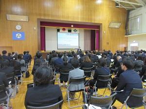 11月22日金曜日の午後、かほく市教育委員会指定研究推進校の公開授業を本校で開催しました。全学年から1クラスずつとのぞみ学級が公開しました。かほく市の先生方だけでなく他の市町から参観いただいた先生もいらして、七塚小の教師と児童の作り上げた学習の一端をお指名することができました。分科会では、グループに分かれて、研究の視点を中心によかった点や改善点を話し合うことができました。また金沢大学教授の松原道男先生に「教科の見方・考え方に基づく主体的な学習のあり方」と題してご講演も賜りました。本校の研究にご指導ご助言を賜りました松原先生をはじめ、石川県教育委員会、金沢教育事務所、かほく市教育委員会、そしてご参加くださった先生方に心より御礼申し上げます。そして今回の成果と課題を生かして、更に研究を進めていく所存です。本当にありがとうござました。