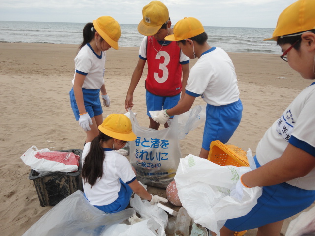 本日は、午後から全校で七塚の浜を清掃する「海浜クリーン作戦」を行いました。