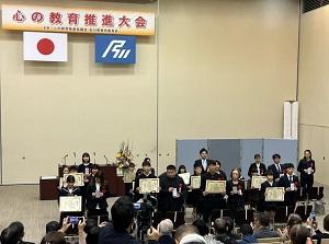午後からは心の教育推進大会が地場産業センターで開催されました。親子の手紙の表彰式があり、本校の児童と保護者、本校職員とお子さんが優秀賞として参加しました。とても感動的な式典でした。また絵本作家くすのきしげのりさんのご講演は、読み聞かせと本当に心温まる内容でした。また、くすのきさんの絵本を子供たちにも広めていけたらと思います。
