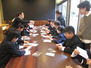 昨日お昼休みに、図書室・多目的ホールにて「家族に感謝のしおり作りの会」を行いました。