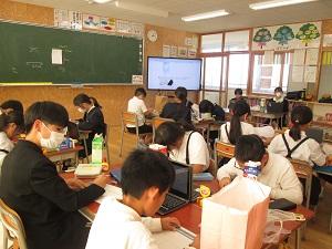 4年生は、パソコンの調子が悪かったのですが、給食センターの方々の服装や道具を見ながら、給食はどんな大変な苦労をしながら作っているかについて知りました。