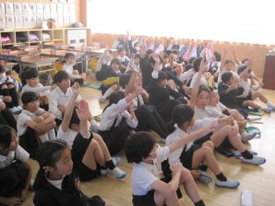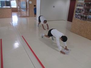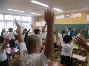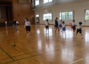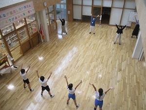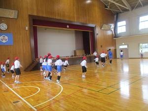 今日は水曜日、朝学習の時間は「げんきっずタイム」です。みんな元気に体を動かしていました。