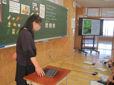 さて七塚小では例年、栄養教諭の方をゲストティーチャーとしてお招きし、全学年で食育の授業を行っています。今日は、2・4・5年生で授業を行いました。