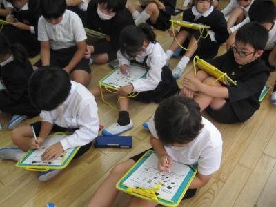 そして、今日の長休みは縦割り班で楽しく遊ぶ「わんぱくタイム」でした。6年生が中心となっていろいろな遊びを考えてくれました。直前になって雨が降り、急遽場所を変更した班もありましたが、みんな仲良く楽しんでいました。6年生の皆さん、計画や進行などのお世話、ありがとうございました。
