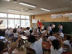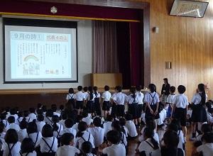 2024年10月2日 11時08分爽やかな秋らしい日が続いています。玄関のプランターも暑い夏を乗り越えて、今が盛りと咲いています。運動場では、サッカーをする子供たちの姿が戻ってきました。水曜日は、げんきっずタイム、朝から体を動かして、しっかりとスイッチを入れている七塚っ子たちです。そして虫取りに夢中な2年生。カマキリを教室で飼っていました。エサは生きた虫ですが、これも自然の摂理です。一人一人が夢中になれるものを見つけて、それぞれの秋を満喫しているように感じます。また朝の会に、6年生の応援団が、5年教室に優勝旗をもっていっていました。これから毎日、赤組の教室にもっていくのだそうです。こうやって、6年生から下級生へ、伝統はしっかりと受け継がれていくのですね。6年生、ありがとうございます。