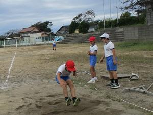 6年生は、明日行われる予定のかほく市小学校体育大会に向けて、それぞれの種目に分かれて練習していました。予報では今日の午後から下り坂ですが、何とか実施できることを祈っています。
