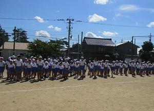 運動会の練習をはまなす子ども園の年長さんが参観に来てくれました。とても暑い中、ありがとうございました。1・2年生は、来年入ってくる年長児さんや子ども園の先生の前ということもあり、一生懸命頑張っていました。入学して半年ですが、とっても成長した1年生を見てたくさんほめてくださいました