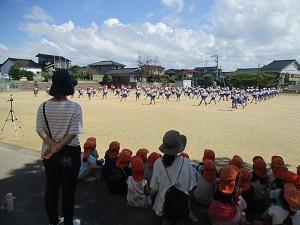 年長児さん、1・2年生の運動会練習を参観しました