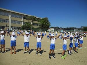 2024年9月25日 13時40分運動会の練習をはまなす子ども園の年長さんが参観に来てくれました。とても暑い中、ありがとうございました。1・2年生は、来年入ってくる年長児さんや子ども園の先生の前ということもあり、一生懸命頑張っていました。入学して半年ですが、とっても成長した1年生を見てたくさんほめてくださいました