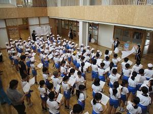 さて今日の長休みは、「わんぱくタイム」で、赤白に分かれての応援練習でした。赤は体育館で白は多目的ホールで行いました。6年生の応援団が前に出て一生懸命頑張っていました。これからしばらくの間は朝自習でも応援の練習をします。赤も白もチームワークを高めて運動会に一直線です!ますます運動会が楽しみになってきました