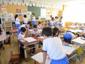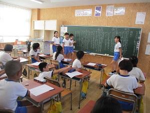 さて今日の朝自習の時間から、応援練習が始まりました。6年生が1~4年生のクラスに分かれて出向き、応援の練習を指導します。5年生はそのまま5年生の応援団が前へ出てリードしていました。白組は、昨日の係委員会で撮った動画に合わせて練習していました。赤も白も、一生懸命に声を出していましたよ。そしてとっても頼もしく指導してくれていた6年生。小学校最後の運動会までの日々を悔いなく過ごしてくださいね