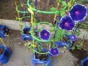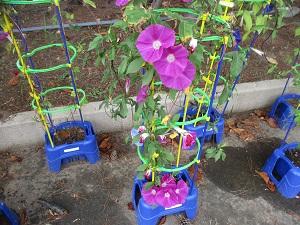 昨日と比べて少し涼しい朝でしたね。1年生が育てているアサガオが、とってもきれいな花を咲かせています。