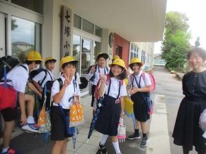 2024年9月2日 10時07分心配した台風も何とか大事に至らず、ほっと一安心の朝となりました。子供たちは傘を差しながらたくさんの荷物をもって元気に登校してくれました。1年生はお家の人と一緒に、夏の間家で育てていたアサガオの鉢を学校に持ってきてくれました。暑い夏をしっかりと乗り越えてたくさんの花を咲かせているアサガオ、七塚っ子の今日の姿と重なり、とても嬉しく感じた朝でした。