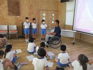 2024年6月25日 10時00分総合的な学習の時間にパラスポーツについて学んでいる4年生。今回は車いすバスケットとボッチャの体験をしました。講師は昨年度からお世話になっている石川県車いすバスケットボールチーム「Jamaney石川」のお二人とかほく市社会福祉協議会の方です。体育館で、ボッチャと車いすバスケットの体験をするクラスと、多目的室で車いすで生活している講師の方の日常生活の様子や質問などをするクラスに分かれて、後で交代するというスタイルで交流しました。はじめはおそるおそる動かしていた車いすも、どんどん上手になり、最後には簡単なバスケットのゲームも体験できました。ボッチャも、最初はただ投げていたボールですが、チームでの駆け引きや相手の玉に当てることもわかってくると、どんどん接戦や逆転が生まれてきて、ゲームの奥深さを学ぶことができました。また、車いすでの運転の仕方や暮らし方を動画で見せていただくことで、できないことも様々な工夫でできるようにしていくことの大切さや、車いすの人たちは不便ではあるけれど決してかわいそうではなくむしろ自分たちよりすごいことがたくさんあると学びました。ご協力いただいた講師の皆さん、本当にありがとうございました。